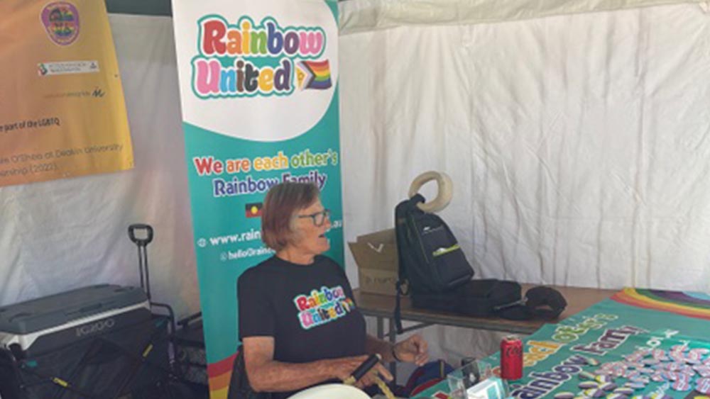 We’ve been going to Midsumma Carnival and having a stall for four years now. We hand out merchandise for Rainbow United and talk to everyone who comes to the stall.